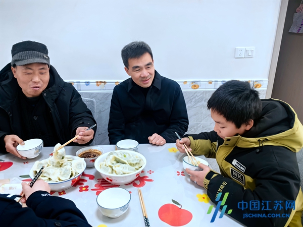 中国江苏网2月14日盐城讯 春节临近,盐城市阜宁县古河镇小许村年味渐浓。在一栋白墙灰瓦的新房里,热气升腾,欢声笑语不断。73岁的徐义中老爹系着围裙,正和儿子徐友权、儿媳倪婷婷一起包饺子、烧肉菜。门外,省委驻阜宁县乡村振兴工作队党支部副书记、小许村驻村第一书记王继伟和几名队员,提着春联、福字和年货,笑着走了进来。