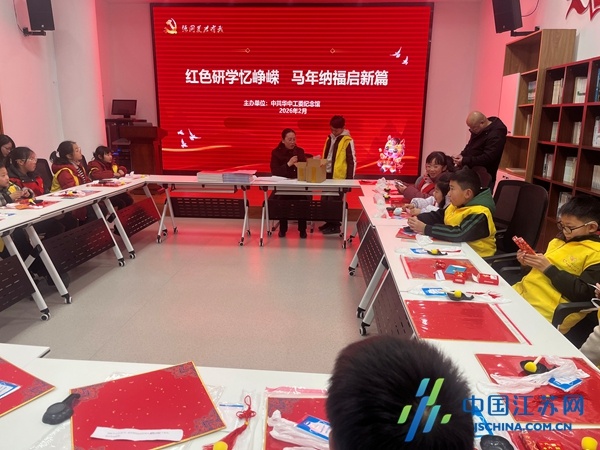 中国江苏网2月25日盐城讯 为传承红色基因、厚植爱国情怀,使青少年在沉浸式体验中重温革命峥嵘岁月,于年味互动里开启马年新征程,近日,一场主题为“红色研学忆峥嵘 马年纳福启新篇”的研学实践活动在射阳县华中工委纪念馆温馨举行。20名小朋友踏入这片红色热土,以初心作笔、以福韵为墨,在学思践悟中传承红色血脉,在趣味实践中喜迎新春佳节。