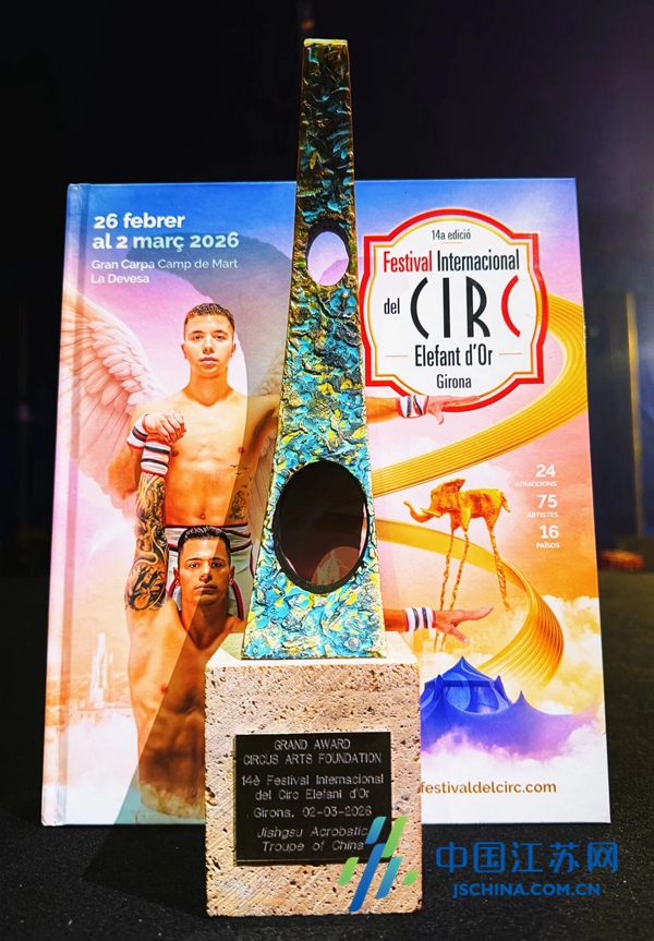 中国江苏网3月4日盐城讯 当武侠意境遇上传统杂技,会有多惊艳?当地时间3月3日,第14届西班牙金象国际马戏节传来捷报——江苏省杂技团杂技作品《凌云踏浪——跳板秋千蹦床》出海征战,与16国(地区)24个节目同台竞技,圈粉全场。该作品以武侠为魂,融秋千、蹦床、跳板于一体,行云流水如侠客踏浪,一举拿下含金量极高的“组委会大奖”。