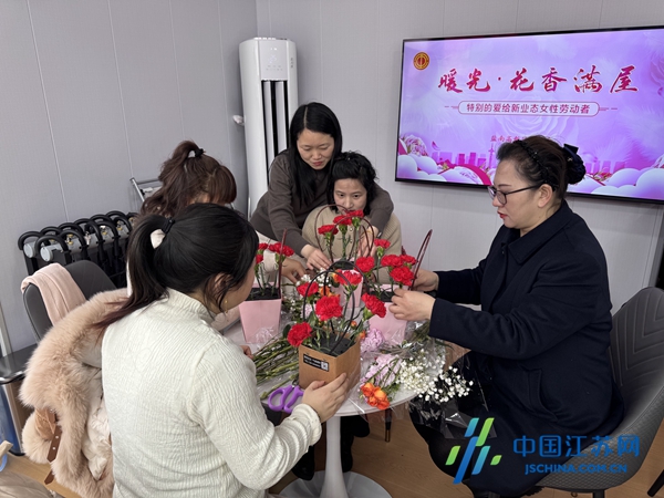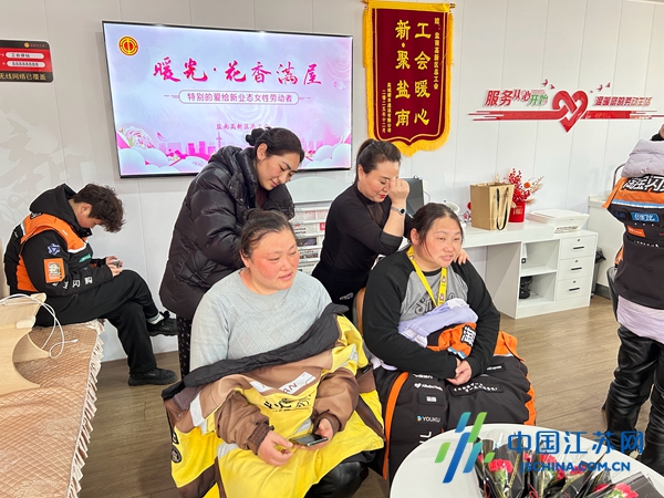 中国江苏网3月9日盐城讯 春风送暖,芳华绽放。在第116个“三八”国际劳动妇女节来临之际,3月6日,盐南高新区总工会以“暖光・花香满屋——特别的爱给新业态女性劳动者”为主题,走进辖区各工会驿站,为新就业形态女性劳动者送上暖心节日服务。