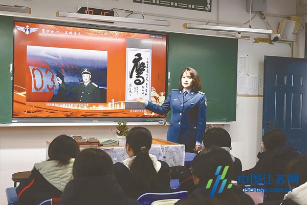 中国江苏网3月13日盐城讯 “盐城是革命老区、红色沃土,老团长一手缔造的红色血脉仍在这片土地上不断赓续、发展壮大……”寒假期间,空军工程大学信息与导航学院学员李欣然回到家乡盐城,先后走进部队军营、亭湖区新民社区、盐城市明达高级中学,开展以“丹心铁骨 铸剑长空”为主题的红色文化宣讲活动。