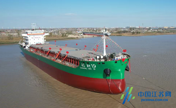 中国江苏网3月24日盐城讯 3月18日,春潮涌动。站在位于江苏省盐城市响水灌河南岸的江苏勤丰船业码头,总经理徐青方望着眼前繁忙的船台,语气里满是自豪:“今年,我们已有5艘船下水、2艘船出海。刚出海的‘创新19’轮,是国内首艘以甲醇为单一燃料的江海直达船。”