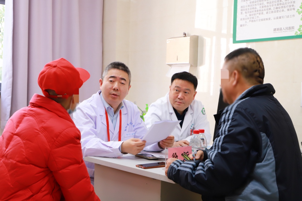 门诊候诊区座无虚席,群众早早排起了长队。每一位专家都耐心问诊、细致查体,用专业知识与人文温情,为建湖百姓带来了实实在在的安心与希望。诊室里,复旦大学附属肿瘤医院胰腺外科徐近教授正为一位术后专程前来复诊的患者梳理后续治疗路径,言语间既有医学的专业精准,更有人文的审慎关怀。患者言语中满是庆幸:“上周在网上看到上海专家来义诊的消息,今天一早就从盐城赶过来,在家门口就能让徐教授这样的专家看,不用奔波,是真的方便!”