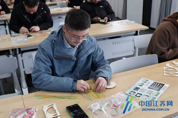 在“编鸢铃”现场,志愿者提前备好竹编鸢铃制作材料包,细致讲解编织技巧,参与者凝神专注、巧手翻飞,穿绳、编结、固定,一个个精致的鸢铃在指尖成型,在动手实践中传承传统技艺,寄托对美好生活的期盼,让文明新风在指尖传递。