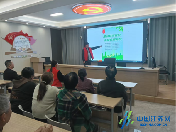 中国江苏网4月3日盐城讯 为持续深化移风易俗工作,培育文明乡风、良好家风、淳朴民风,让文明新风融入乡村生活方方面面,近日,盐城市滨海县通榆镇新时代文明实践所牵头开展移风易俗主题宣传活动,通过发放宣传单、开展主题宣讲、递发倡议书、观看公益短片等多种形式,推动移风易俗理念入脑入心,让文明新风劲吹通榆大地。