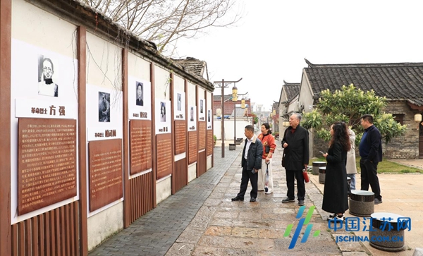 活动的后半程是一场沉浸式的古镇文化寻踪。在卞龙林理事长的细致讲解下,艺术家与参与者们漫步古镇,探访了承载往昔市井生活的历史街巷,先后参观历史建筑祁家小院、陈毅登岸演讲处、盐南五战文化墙、陈家枯枝牡丹等处。一步一景,一物一情,艺术家们通过实地走访,深切感受了伍佑古镇深厚的历史积淀与独特的人文魅力,也为未来的艺术创作汲取了鲜活的灵感源泉。