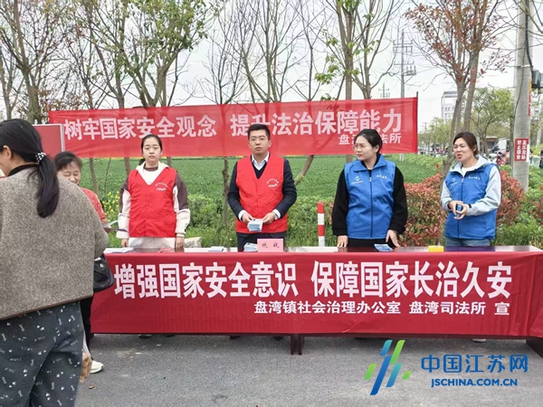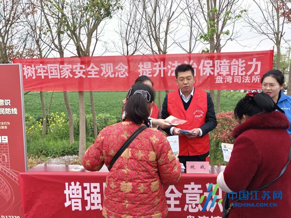 中国江苏网4月15日盐城讯 为深入贯彻总体国家安全观,盐城市射阳县盘湾镇政协联络委联合镇综治办、司法所等单位开展宣传教育活动,通过多方协同、精准施策,让国家安全理念渗透到乡村角落、企业车间、校园课堂,凝聚起“国家安全、人人有责”的全民共识。