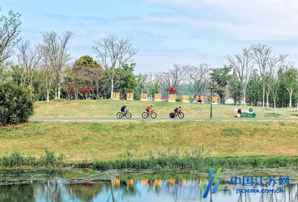 游泳赛段在碧波荡漾的蟒蛇河未来水世界展开;自行车赛道全长44公里,沿生态廊道蜿蜒,途经三胡故里、红星窑厂遗址等人文地标;10公里跑步赛道则完全在河畔林荫与花海中穿行。四月的盐都,月季、月见草、鼠尾草、鸢尾等各色花卉交织,宛如一幅流动的油画,选手的每一步都踏在风景里。