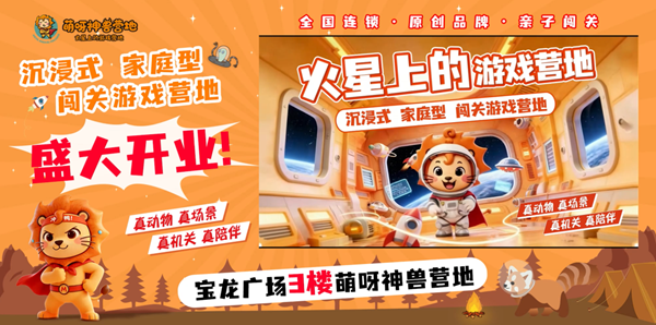 中国江苏网4月21日盐城讯 在这个生机勃勃的初夏,盐南高新区黄海街道宝龙城市广场又迎来一个令人兴奋的好消息!经过紧锣密鼓的筹备,备受期待的沉浸式亲子室内乐园——“萌呀神兽营地”,即将于5月1日在宝龙城市广场三楼南侧正式开店迎客。