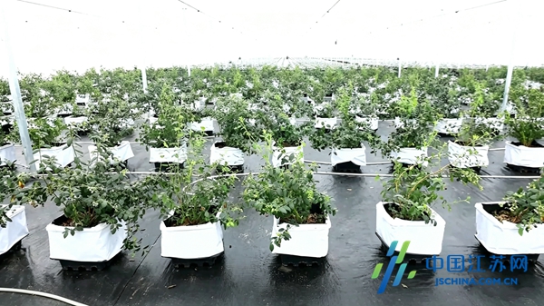 这片充满活力的蓝莓园,是去年11月才落户黄圩镇云梯关村的“新成员”,总种植面积近200亩,采用露天与大棚相结合的种植模式。其中10亩智能控温大棚作为试验田,首批试种的蓝莓已经成熟挂果,长势喜人,达到预期种植效果。