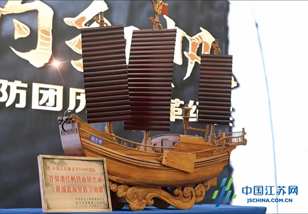 此次赠送的红帆船模型,有一个响亮的名字——“铁叉”。以当年海防团主力战船为原型精心打造,船体采用传统木作工艺,船篷、侧板、铁锚、风帆等细节一应俱全,真实还原了那段烽火岁月的峥嵘记忆。当年的“51号兵站”——弶港的“江海运输公司”,拥有包括“铁叉”在内的10多艘专用运输船。这些船只以装运出海渔需物资为掩护,在枪林弹雨中承担着护送干部、转运物资等秘密使命。“铁叉”二字饱含着刚毅果敢、无坚不摧的意志,象征着革命先辈不屈不挠的斗争精神。这份凝聚老区深情的礼物,寄托着“不忘我是谁、为了谁、依靠谁”的嘱托,激励子弟兵将敢于斗争的血性融入练兵备战。