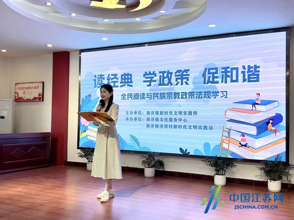中国江苏网4月24日盐城讯 今年4月23日是第31个“世界读书日”。为进一步营造浓厚的社会阅读氛围,盐城市亭湖区南洋镇积极组织开展了以“读经典、学政策、促和谐——全民阅读与民族宗教政策法规学习”为主题的阅读分享活动。