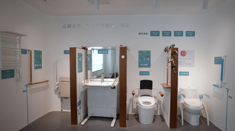 可升降橱柜和操作台面,折叠助浴椅,悬空书桌和圆角处理茶几……在南京福康通健康产业有限公司产品展示厅,覆盖厨房、客厅、卧室、卫浴等各类居家场景的适老化产品一应俱全,围合成一处适应老人生活所需的乐享空间。