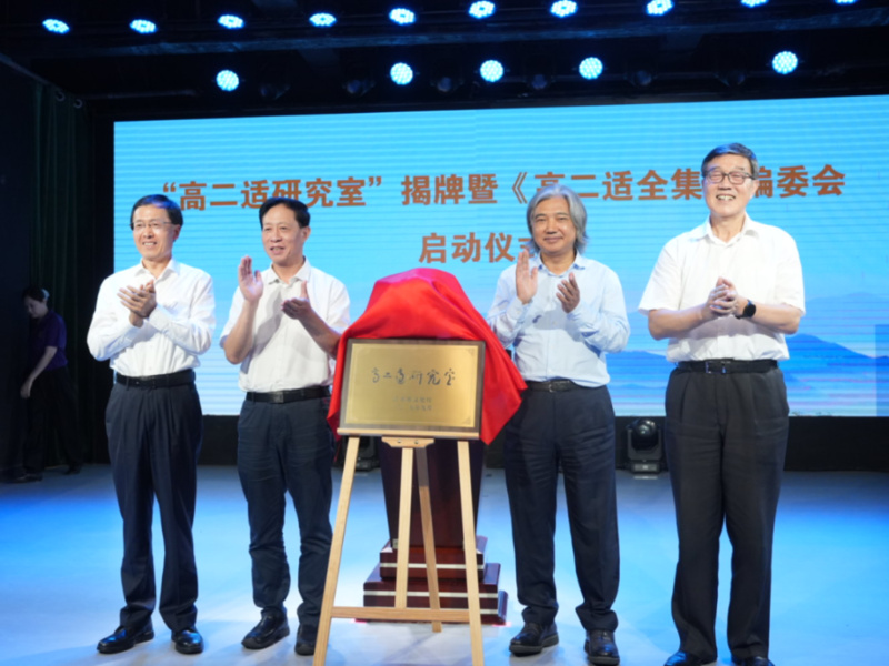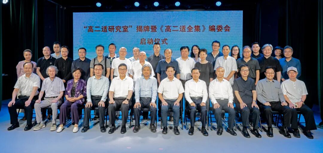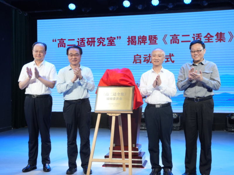 揭牌仪式上,赵金松、杨志纯、李贞强、高云共同为“高二适全集编委会”揭牌,吴为山、胡刚、姚晓东、王立平共同为“高二适研究室”揭牌。