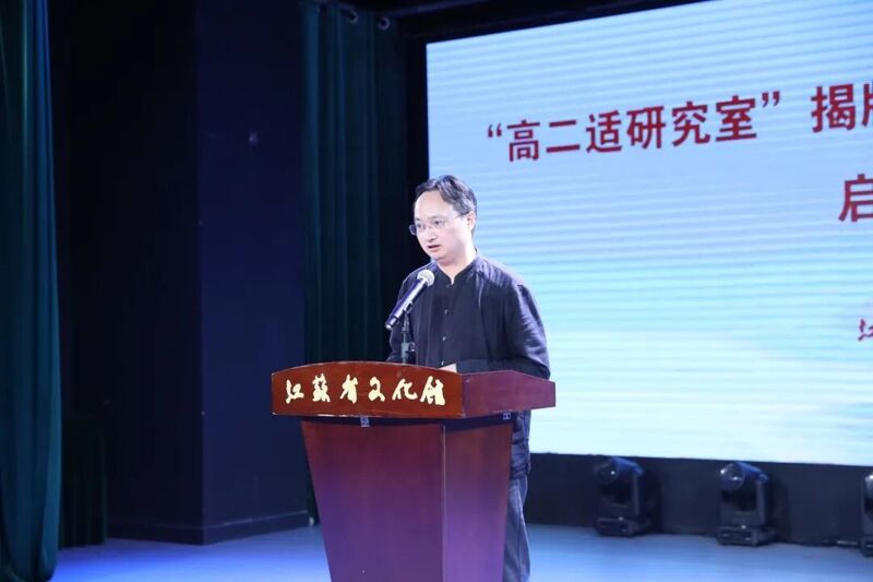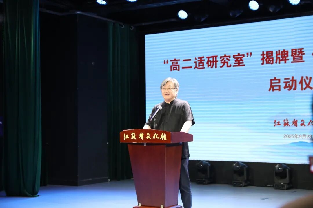 江苏省文化馆党总支书记、馆长、江苏省非物质文化遗产保护中心主任赵彦国在致辞中表示,书法作为全民参与度最高、受众群体最多的艺术形式之一,是文化馆开展全民艺术普及的重要抓手,高二适研究室的设立也与文化馆“以文化人”的核心理念深度契合。研究室将坚守“守正创新”“书以载文、书文双美”的理念,学术引领与创作实践并举,匡正行业风气,重塑书法艺术的精神原点。在大力推动中华优秀传统文化传承发展的今天,研究室的设立将有效推动书法文化的普及与深度传播,既为江苏书法事业“走在前做示范”赋能,也为全国书法事业的高质量发展注入新的活力。