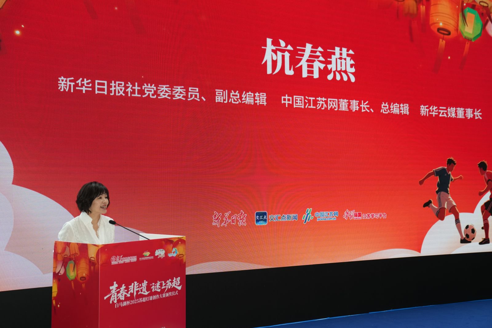 新华日报社党委委员、副总编辑,中国江苏网董事长、总编辑,新华云媒董事长杭春燕在活动致辞中表示,“苏超”的火爆,始于足球,更成于文化。交汇点新闻以中秋佳节为契机,策划推出“青春非遗 ‘谜’上苏超”系列传播活动,将承载着丰富文化内涵和历史价值的灯谜,与苏超热点话题有机结合,提升文化传播的亲和力和感染力。每一则谜题,都是对汉字之美的深情告白;每一次构思,都是对生活热爱的厚礼。“主流媒体,既要当时代的见证者,更要当文化的建设者。下个月,交汇点新闻即将迎来上线10周年。站在新起点,开启新征程,实现新发展。交汇点新闻依托江苏首个AIGC新媒体创意实验室,借助云计算与大数据技术开发 AI智慧中枢,通过AI算法匹配用户画像,精心打造出江苏首个文产数智平台。该平台聚焦文化企业用户IP的孵化、构建、共创、转化、增值、国际化全链条中的数智化服务,以‘一个智慧中枢、六阶赋能推进、三维立体服务’形成‘品牌赋能+数据驱动+生态协同’的文化产业服务新模式。期待大家加入江苏文产数智平台,共同构建数智化时代浪潮下的文化新生态!”杭春燕说。