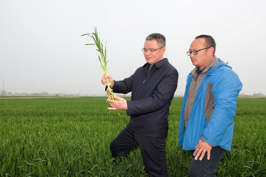 从地里上来,高德荣顾不上运动鞋上的泥土,马不停蹄走进樊川基地的人大代表工作室,向当地的种粮大户和基层人大代表宣讲起全国两会精神,还耐心听取和解答了种植户的问题。连续三年种植扬麦系列的魏有锁和高德荣交流起地里小麦的长势和抗伏倒方法,“今天拿到了高主任的电话号码,过两天他还会到地里亲自看麦子,我心里很高兴!”