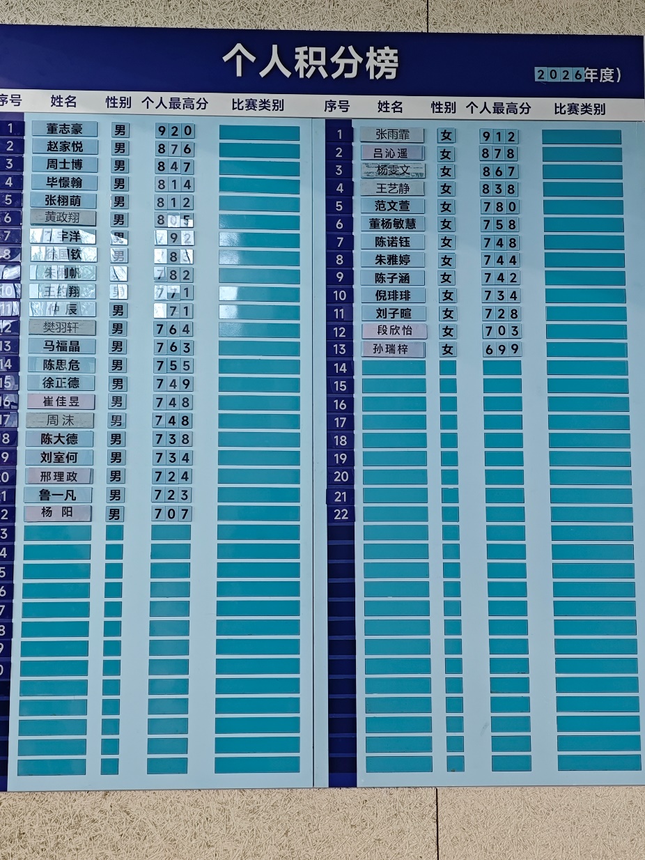 在张雨霏印象里,南京体育学院的游泳馆“没什么大变化”。青少年时期,她每天泡在这方泳池里5-7个小时,起跳、入水、往返,温热水花打在池壁,又回到池里,“推”着张雨霏一步步向前。游泳馆的荣誉墙上,有一张照片记录张雨霏在2014年第十七届釜山亚运会上夺得女子4x100米自由泳接力金牌,彼时作为泳坛新面孔的她只有16岁。不远处,2026年度个人积分榜上,张雨霏的名字出现在女子组第一名位置。两处印记跨越12年,也生动记录下张雨霏从泳坛新星到顶尖运动员的蜕变。
