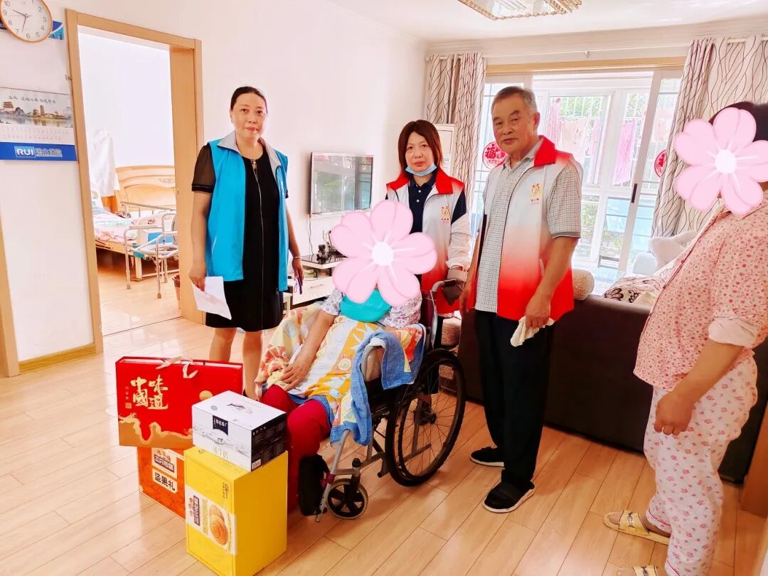“心关爱”义工服务队充分利用社区党组织网络楼栋全覆盖的作用,与网格员和微网格员力量,开展了“心连心·暖中秋”走访慰问活动,为辖区25户重残家庭送上节日的祝福和慰问品,特别关注辖区内困境儿童、独居老人,不仅仅送去物质上的帮助,还从精神上关怀慰藉他们;在“重阳节”“敬老月”为主题的活动中,结合社企联动开展上门走访慰问,将爱心企业捐赠的食用油、大米等生活日用品送到辖区400多名80岁以上老人家中。