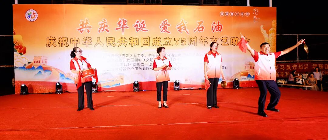 “兴活动”义工服务队是以“油之韵”艺术团部分成员为主,依托社区新时代文明实践站,油田离退休管理科、老年大学,创建了合唱团、腰鼓队、舞蹈团等文体团队。在每周定期开展训练与表演的同时注重思想引领、学习提高、旗帜带动,将文化力转化为凝聚力、号召力、执行力、发展力,推动服务文化、党建文化、社区治理文化等。在今年中秋、国庆佳节来临前,服务队和“油之韵”艺术团筹办晚会,精心编排节目,为辖区居民奉上了一场视觉与心灵的双重盛宴。