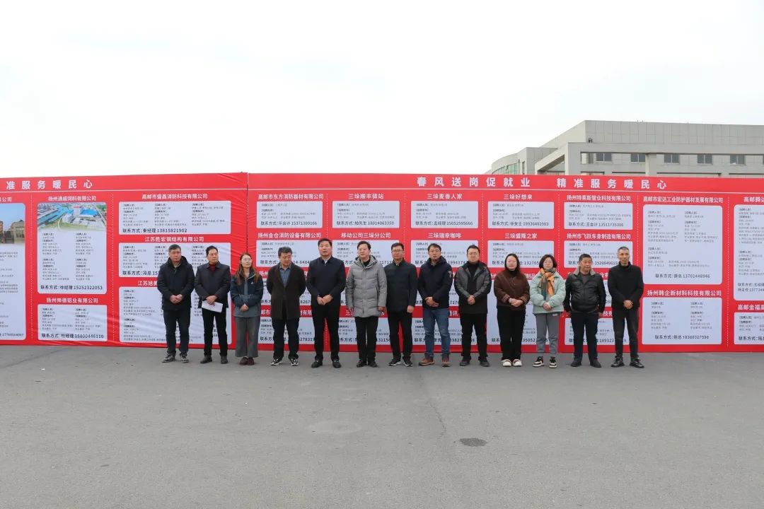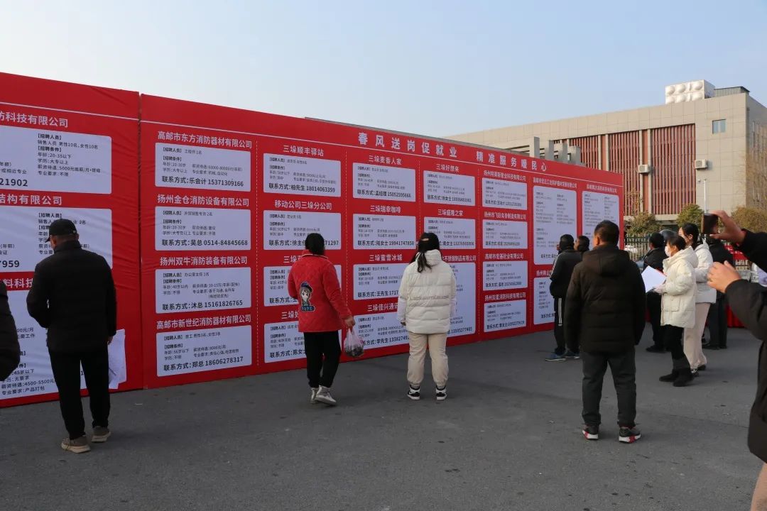 中国江苏网讯 春风送岗位,“职”达家门口。为促进返乡就业农民工、待业大学生与用工单位高效匹配,1月23日上午,三垛镇人民政府开展以“春风送岗促就业,精准服务暖民心”为主题的大型招聘活动,镇党委书记陈正斌、高邮市人社局副局长姜庆杰、高邮市人力资源服务中心主任居镒、副镇长俞孝志、副镇长居飞参加活动。
