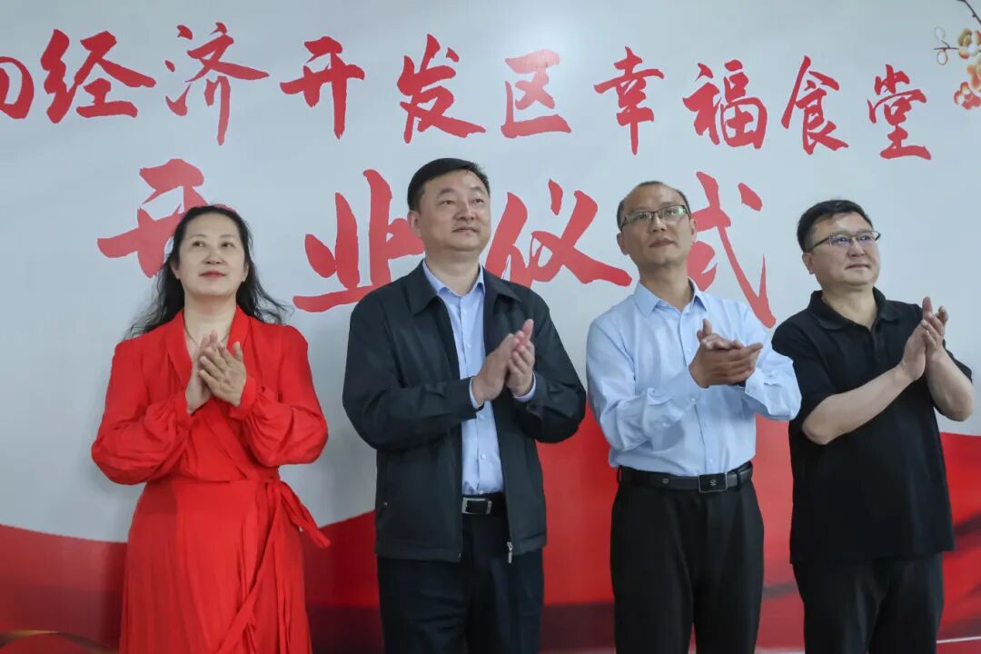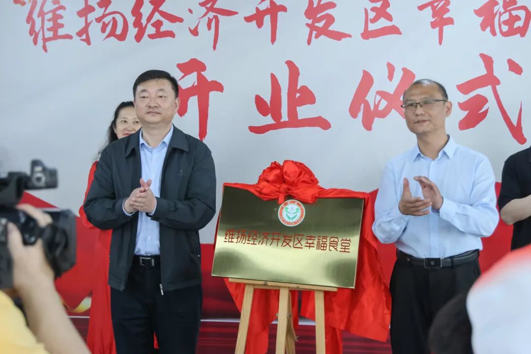 中国江苏网讯 4月19日,维扬经济开发区幸福食堂开业仪式隆重举行,区政府有关负责同志和维扬经济开发区党工委副书记、管委会主任仇震出席活动,共同为幸福食堂揭牌。扬州科创教育投资集团副总经理朱晓东,扬州科创教育投资集团工会副主席、扬州科教服务公司董事长、总经理申丽蓉,维扬经济开发区党工委委员、党政办公室主任周子颖,维扬经济开发区社会治理局局长孙志勇等领导和嘉宾出席活动,仪式由维扬经济开发区党工委委员、管委会副主任陶晓飞主持。开发区机关部门、社区党员干部代表及部分居民代表共计60余人参加活动。