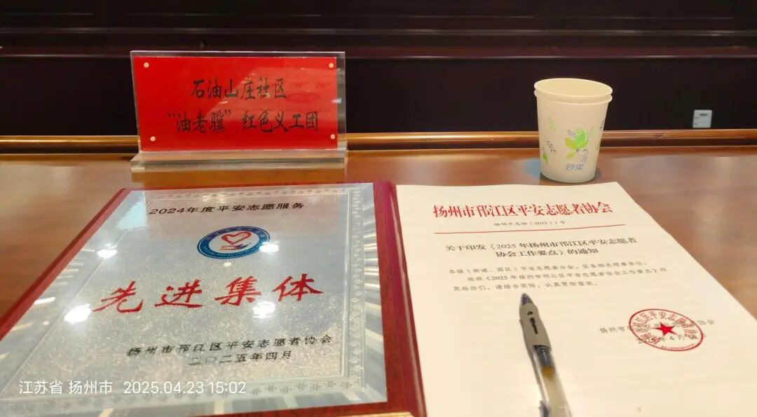 中国江苏网讯 4月23日下午,邗江区平安志愿者协会理事(扩大)会议在区公安分局召开,会议公布了2024年度平安志愿服务工作“先进集体”和“先进个人”推选结果,其中“先进集体”20家、“先进个人”25人,维扬经济开发区石油山庄“油老骥”红色义工团赫然在列,被评定为“先进集体”荣誉称号。