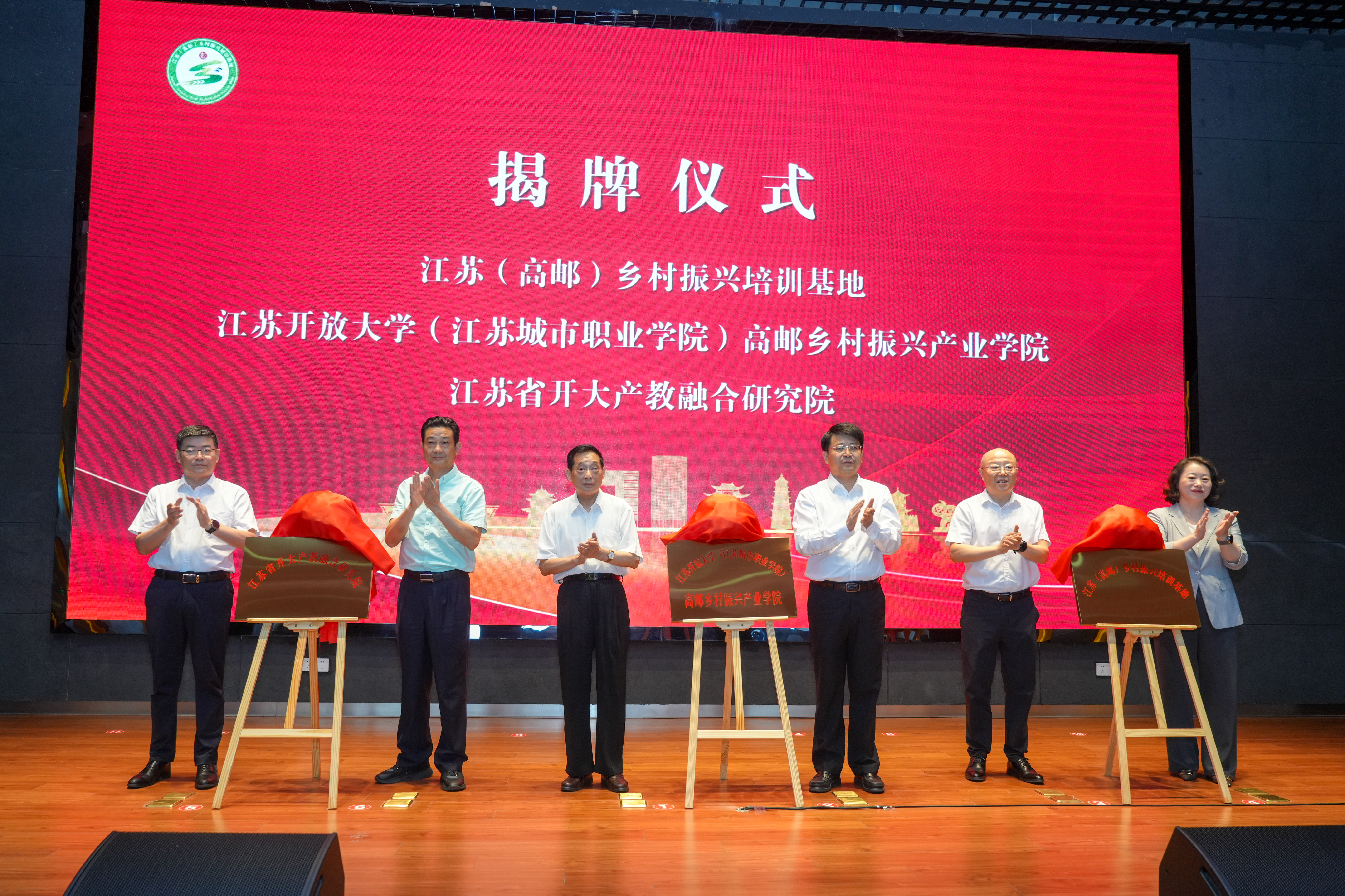 活动中还举行了“江苏(高邮)乡村振兴培训基地”“江苏开放大学(江苏城市职业学院)高邮乡村振兴产业学院”“江苏省开大产教融合研究院”揭牌仪式。