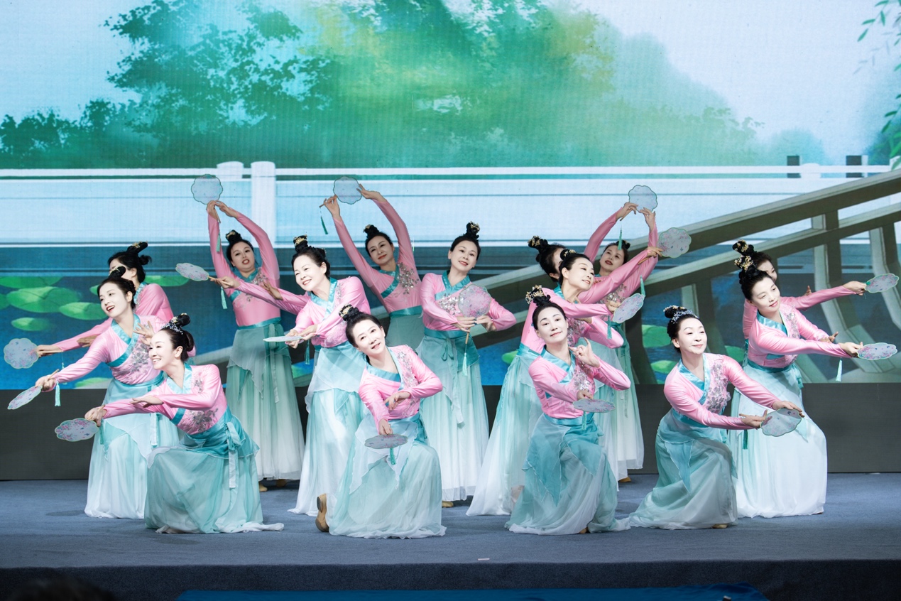 演出在邗江区凯之韵艺术团带来的舞蹈《运河的流水》中拉开帷幕,舞者们以优美的舞姿描绘了运河的灵动与诗意,瞬间点燃了现场气氛。随后,扬州评话《舌尖上的邗江》以幽默生动的语言展现了邗江的美食文化,引得观众笑声连连。舞蹈《歌吹扬州》则用翩跹水袖勾勒出扬州城的千年风韵,仿佛将观众带入了唐诗中的烟花三月。此外,萨克斯独奏、扬州木偶等节目轮番登场,将现场氛围一次次推向高潮。压轴节目歌舞《春风十万里》以恢宏的旋律和绚丽的舞姿,表达了人们对新时代美好生活的赞美与向往,为演出画上了圆满的句号。此次活动是邗江区推动群众文化高质量发展的重要举措,不仅打造了群众身边的舞台,让市民在休闲购物的同时,观看文艺演出、“零距离”感受优质文化享受,也为优秀群众文艺团队提供了展示风采的平台。