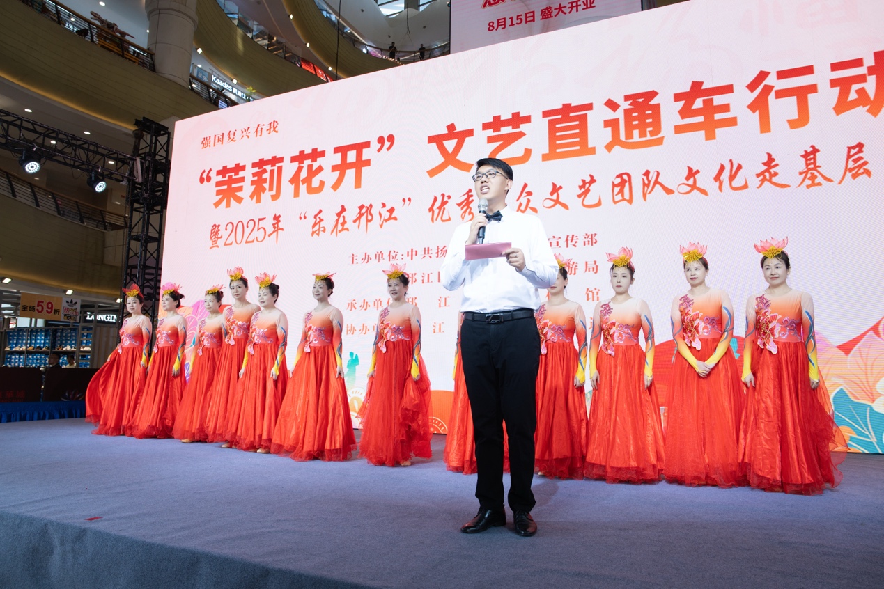 中国江苏网讯 8月17日下午,扬州市邗江区“茉莉花开”文艺直通车行动暨“乐在邗江”优秀群众文艺团队文化走基层活动在京华城一楼中庭精彩上演。此次活动以文化惠民为主题,通过丰富多彩的文艺表演,为市民带来了一场视听盛宴,展现了邗江区群众文化的蓬勃活力。
