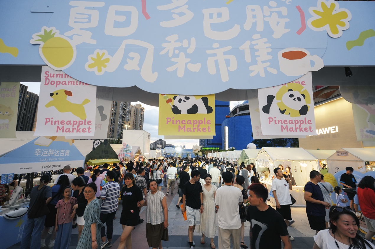 今年以来,邗江区针对不同群体文化需求,从“百姓在哪 花开何处”出发,在各镇(街道、园区)开展了丰富多彩的“茉莉花开”文艺直通车行动。新盛街道以“茉莉花开”文艺直通车行动为契机,不仅将优质的文化资源送到了群众身边、给商圈注入了文化活力与人气,还联合京华城共绘文化融合新图景——夏日多巴胺凤梨市集。该活动邀请了40家超人气主理人来“炸街”,单日客流量突破16万人次,业绩同比增长13%,多项数据刷新商圈纪录。10月1日—10月3日,凤梨市集还将继续集结美食、潮玩、手作等,搭配精彩活动,为大家解锁欢乐长假。(赵丽 沙龙)