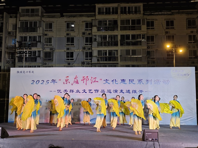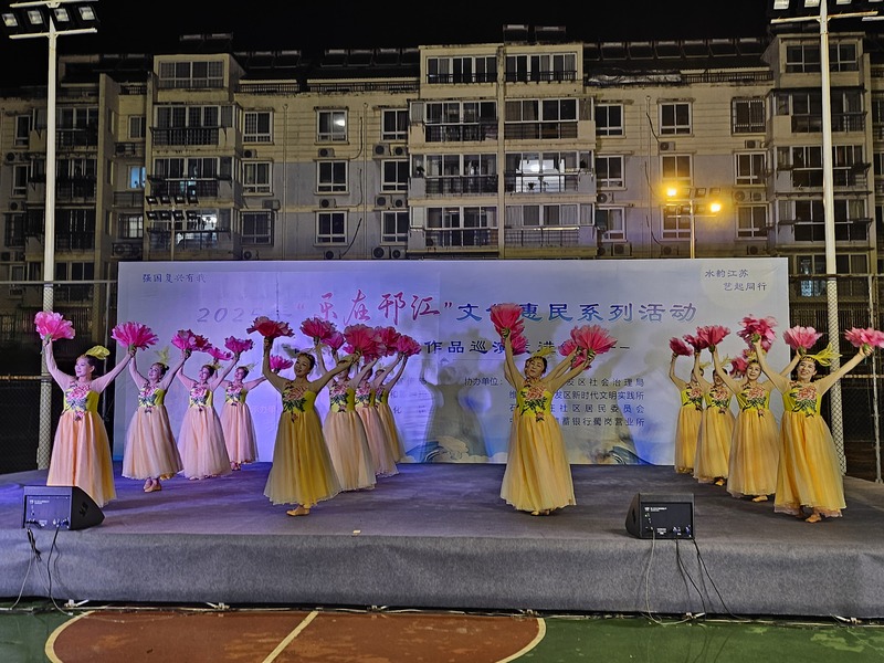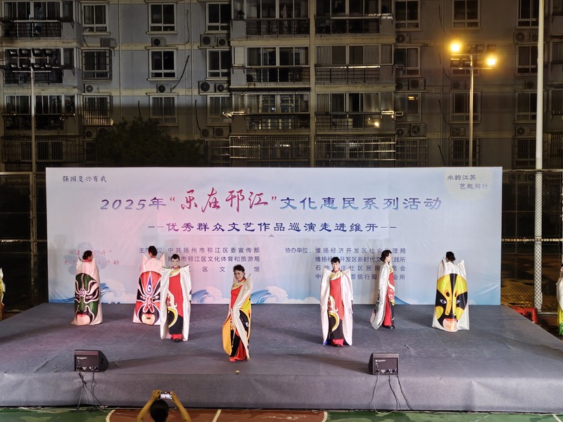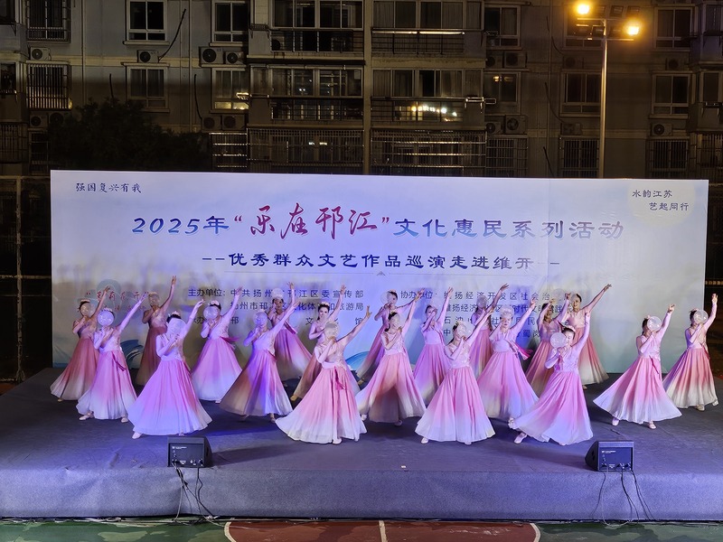 中国江苏网讯 8月25日晚8点,尽管暴雨初歇,石油山庄北区篮球场却人头攒动、热闹非凡。作为2025年“乐在邗江”文化惠民系列活动的重磅场次,优秀群众文艺作品巡演在此精彩上演,为维扬经济开发区石油山庄社区的居民带来了一场视听盛宴。