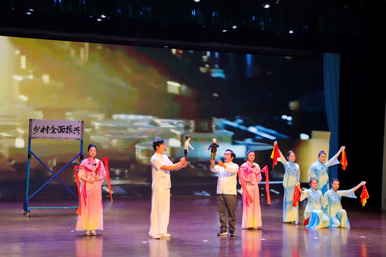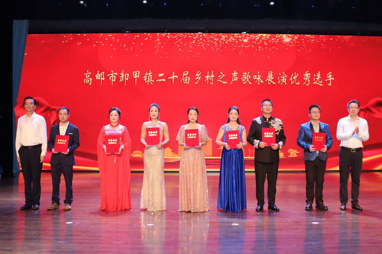 市文广旅局和市文联以“茉莉花开”文艺直通车形式送去精彩文艺节目。整场活动在文化馆艺术团的《唱支山歌给党听》中拉开序幕,无伴奏小组唱《隔趟哉》唱出了高邮浓郁的水乡文化和“中国民歌之乡”的诗情画意。由文联策划、市音协统筹的《灵秀八桥》,市文艺工作者走进基层、深入生活的优秀作品,将基层经济社会发展成果融于悠扬的旋律中。卸甲镇编排的情景表演《少年志如炬》,通过生动的演绎带领观众走进毛伯勤烈士的壮烈青春,感受那永不熄灭的信仰之火。卸甲镇“凤鸣”宣讲团带来的《乡村全面振兴迈新程》,将本土的省级非遗项目肩担木偶戏与理论宣讲相结合,用群众喜闻乐见的快板形式传播党的创新理论。卸甲镇“乡村之声”歌咏活动优秀选手带来的《映山红》以婉转的歌声让红色记忆在大家心中久久回荡,《一往情深到高邮》唱出了高邮人文底蕴里的深情之美,《如愿》唱出卸甲人的奋斗与梦想,最后,一首《不忘初心》展现了永远跟党走的坚定信念,将整场活动的气氛推向高潮。