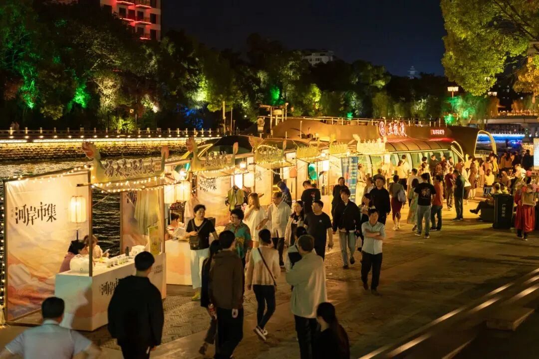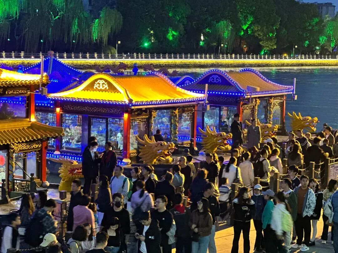 除了游客争相体验,该项目还带动了周边业态的发展。便益门码头的文创市集里,非遗摊位前总是人头攒动,形成“游船引领、全域联动”的夜间消费热潮,连本地市民都将其作为接待亲友的“扬州名片”。