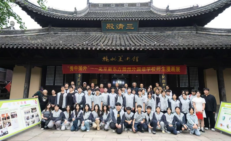 中国江苏网讯 10月16日,“秀中扬外”北京新东方扬州外国语学校师生首届漫画作品展在扬州文联美术馆隆重启幕。近百幅出自该校师生之手的漫画精品,从校园走向更为广阔的公共文化空间,为市民与游客呈现了一场跨越时空的视觉与思想对话。