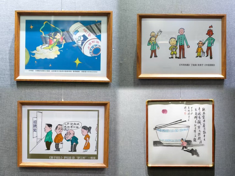 此次展出的近百幅漫画作品,都是竞赛获奖和报刊发表的精品。从古老的神话传说到当代的科幻电影,从生活的点滴趣事到社会的热点话题,都能成为师生笔下生动的创作素材;折射着他们的奇妙想象,蕴含着他们对世界、对人生的独特思考,倾诉着他们求真、向善、尚美的积极追求。从中也可以感受到,漫画教学在培养学生思考能力、创新能力和正确观念等方面具有独到的优势,对于推进美术教学改革、落实以美育人要求具有独特的价值。