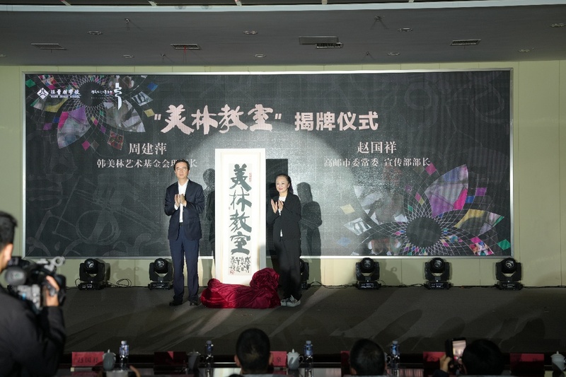 “美林教室”由艺术家韩美林创立,以此助力全国青少年艺术教育事业。汪曾祺学校的这间“美林教室”是全国第七间。赵国祥、韩美林艺术基金会理事长周建萍为“美林教室”揭牌,并与其他领导嘉宾共同为“美林教室”揭幕。