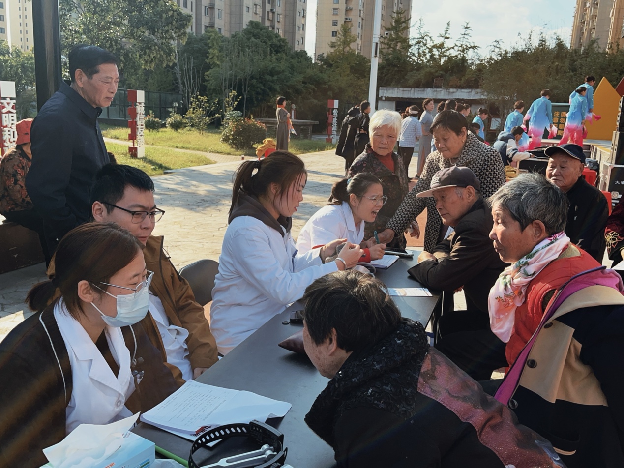 除了丰富的文艺节目,活动现场还贴心设置了健康义诊专区。医护人员耐心为老人们测量血压、血糖,细致解答关于慢性病管理、日常保健等方面的疑问,并根据每位老人的身体状况给出个性化健康建议,同时普及秋冬季节常见疾病的预防知识。老人们有序排队咨询,纷纷表示“在家门口就能享受到免费检查,还能学到健康知识,这个节日过得特别实在”。