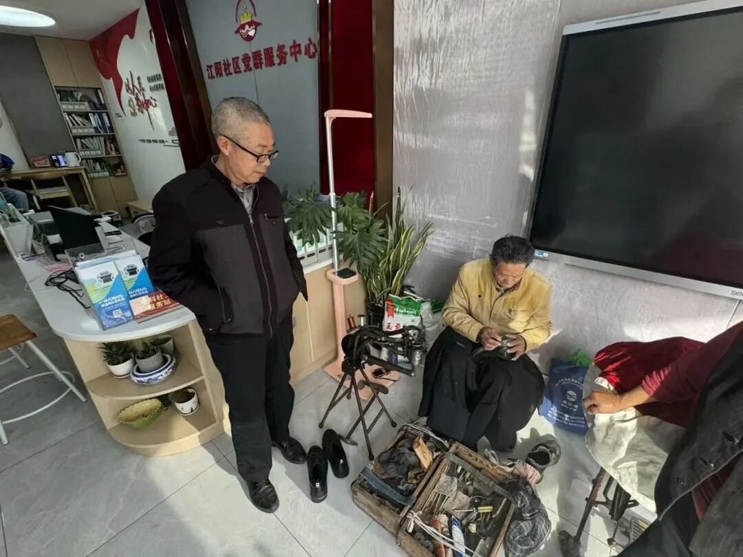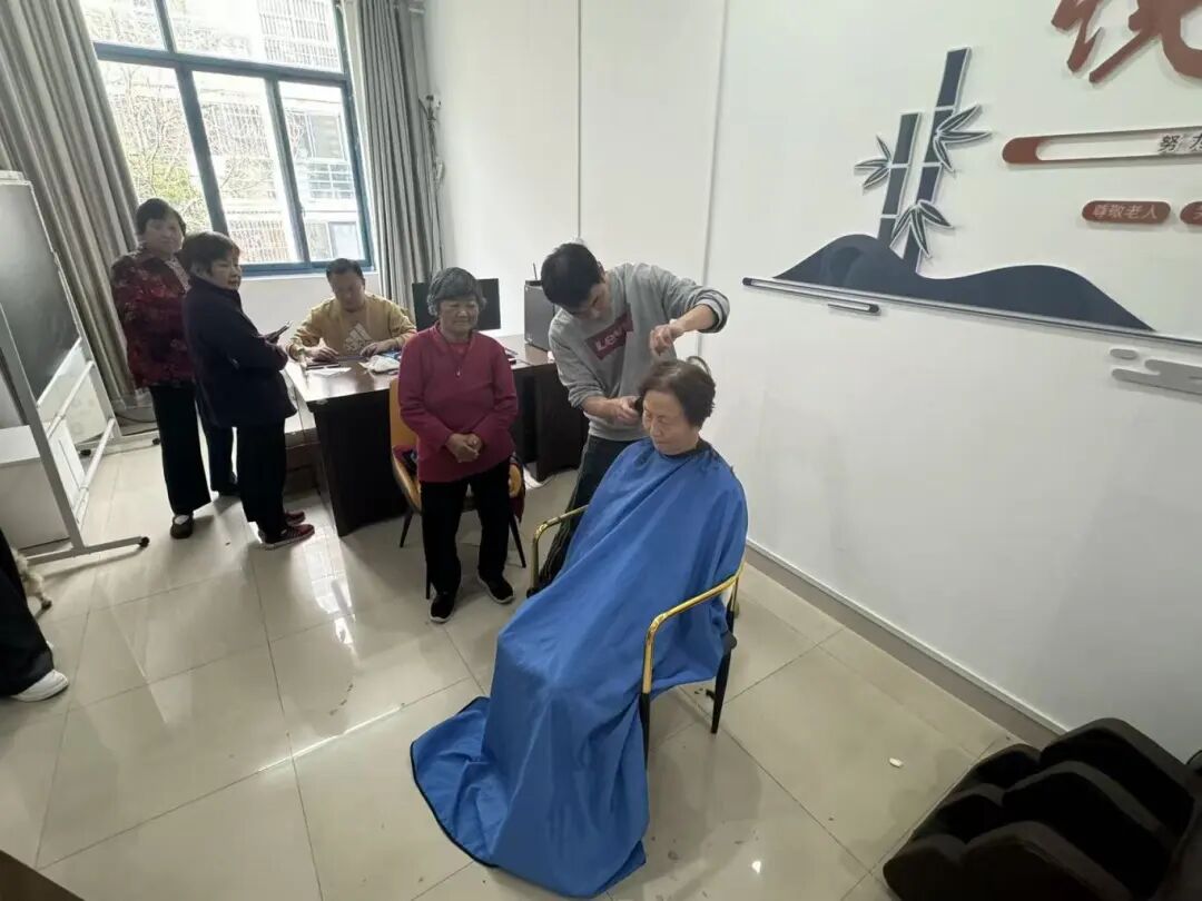 本次活动聚焦老年人的实际生活需求,提供了多项免费服务。活动现场,社区党群服务中心内暖意融融,各项便民服务有序展开。在免费理发区,志愿者手法娴熟,为老人们理出清爽利落的新发型;健康问诊和血糖血压检测点前,江阳卫生服务中心的医护人员一边为老年人们测量血压血糖,一边耐心解答他的健康咨询,并贴心叮嘱日常注意事项;颇具特色的手机贴膜和针线缝补服务,更是以精准的“绣花功夫”解决了老人们的日常难题,赢得了大家的一致好评。