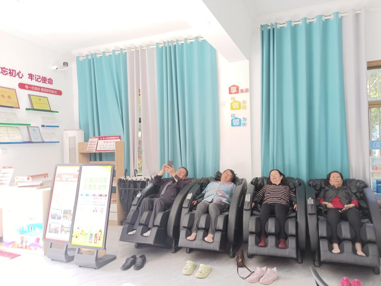 在社区党群服务中心,按摩椅区域每日热闹非凡。早上,家住东方宿舍的年过七旬的郑奶奶准时来按摩肩颈:“每天按30分钟,肩不酸、腰不僵,睡眠都变好了!”午后,接孩子放学的家长借此缓解带娃疲惫;傍晚,下班年轻人顺路放松,舒缓工作压力。“不仅提供设备,我们还定期邀请医护人员讲解正确按摩姿势与养生知识,让居民用得安心。”社区工作人员王晓敏介绍,党群服务中心始终以“居民需求”为核心,除按摩椅外,还不定期开展健康讲座、免费量血压等活动。此外,居家养老室更成为老人读报聊天、邻里互动、休闲掼蛋的“小据点”,既满足了老年群体的社交需求,也让服务站的便民功能更贴合全龄需求,真正实现“一站多用、全龄受益”。