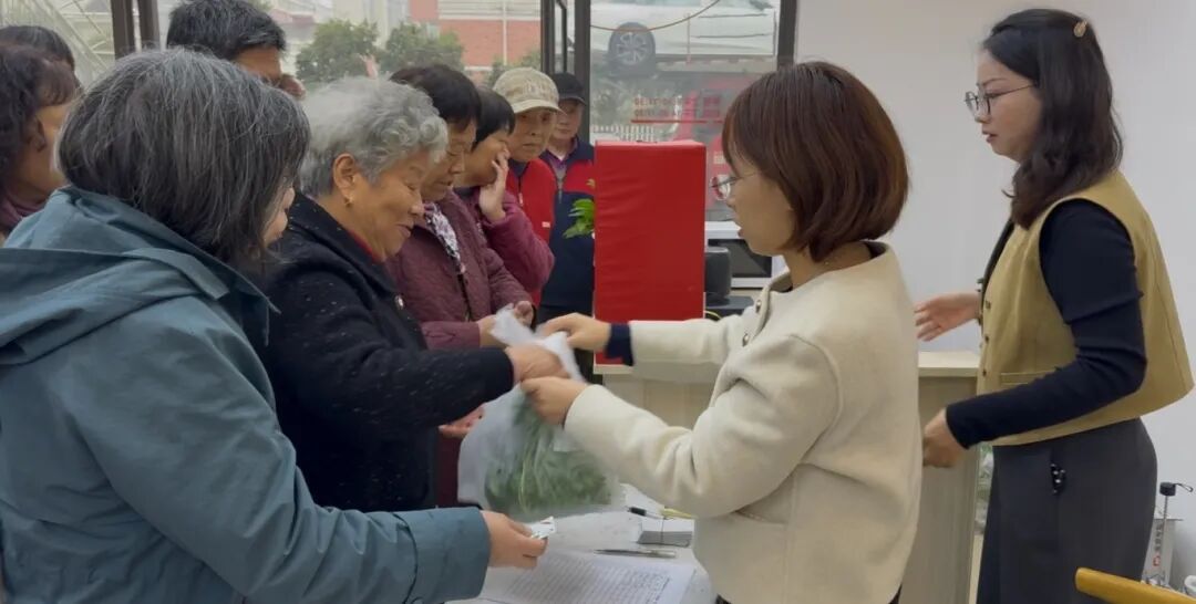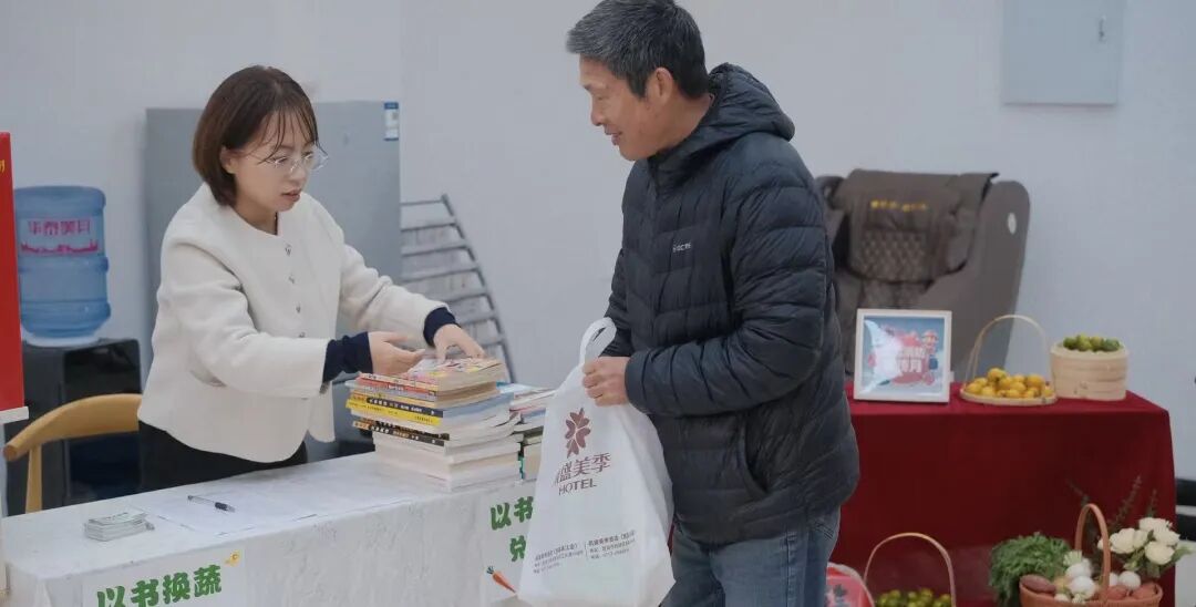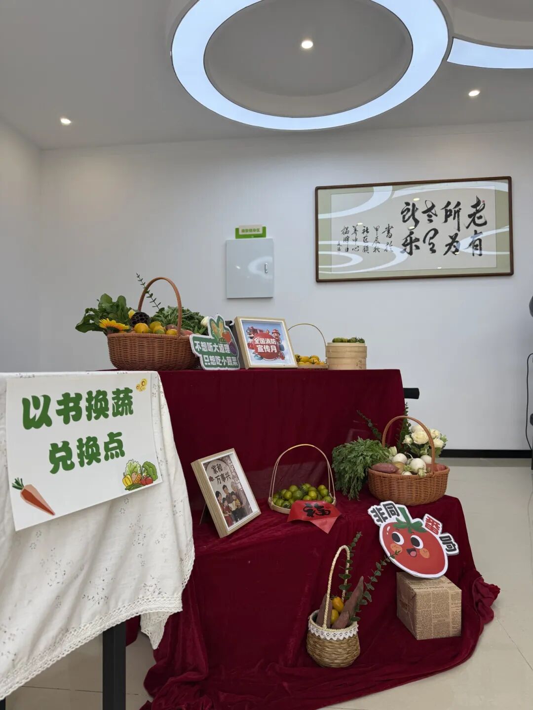 活动伊始,“书香换蔬香”环节便洋溢着共享与温情的氛围。居民们手提精心挑选的书籍从四面八方赶来,在社区工作人员的引导下有序兑换由沙头陈祠村蔬菜基地来的新鲜、翠绿的生态蔬菜。每一本闲置的图书,在此刻被赋予了新的使命,它们将汇入颐养中心的书架内,丰富长者们的精神文化生活;而每一份交换的蔬菜,则承载着社区对居民健康生活的关怀。这一换,换出的是邻里之情,汇聚的是社区暖流,真正实现了“旧书”遇“新生”,“蔬香”传“爱心”。