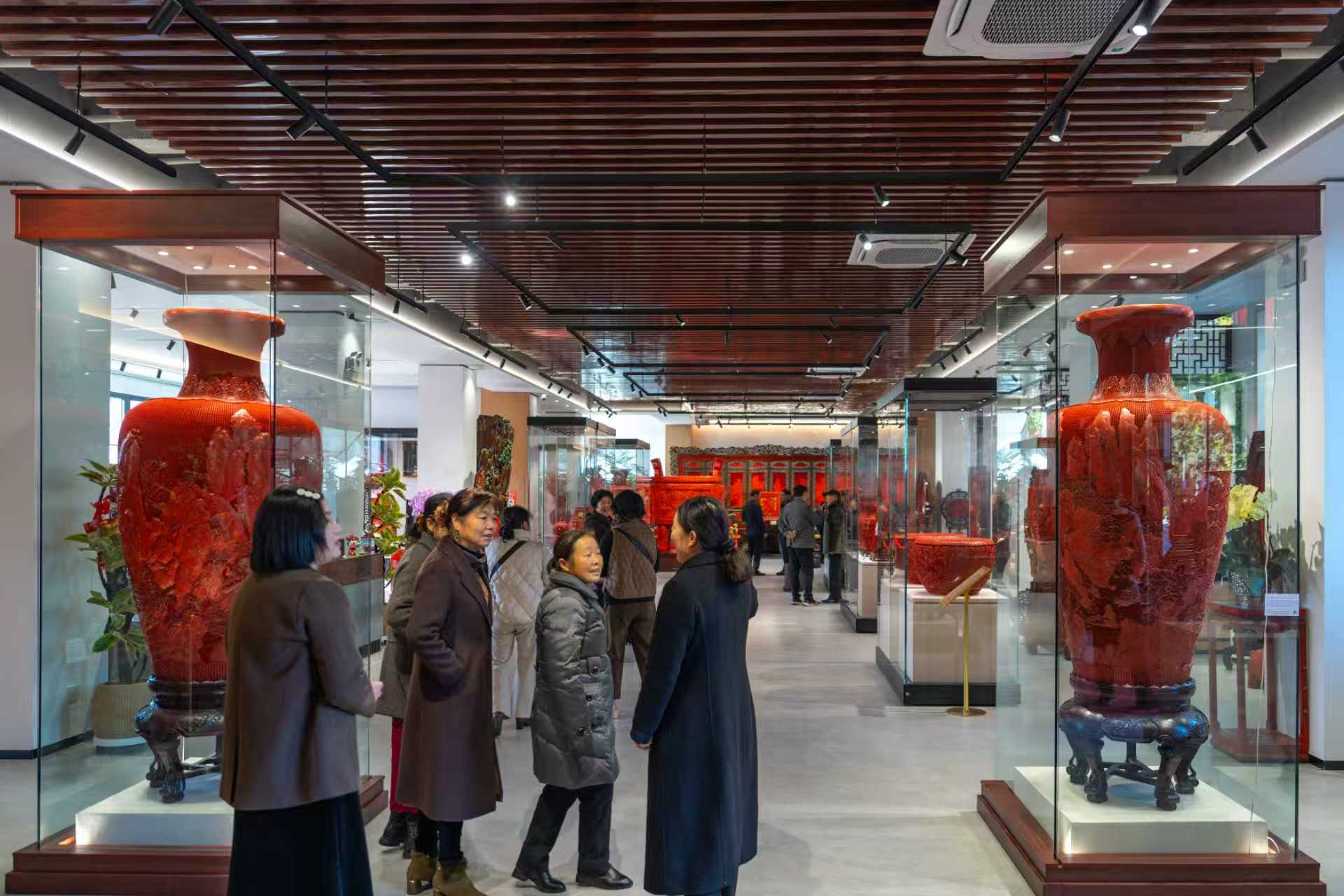 在热烈的掌声中,主持人宣布寳鳳祥漆艺馆正式开馆。仪式结束后,嘉宾们在负责人的引导下移步馆内参观。馆内陈设兼具古韵与新意:既有雕漆、百宝镶嵌等恪守古法的传统珍品,亦有金丝楠木嵌玉等融合现代审美与实用需求的创新佳作。这里既是承载千年文脉、展销扬州漆器精品的核心阵地,也是汇聚中国工艺美术大师、孕育创新创作的集聚平台,更是联结全国各大艺术院校、助力研学实践的重要基地。(张韦)
