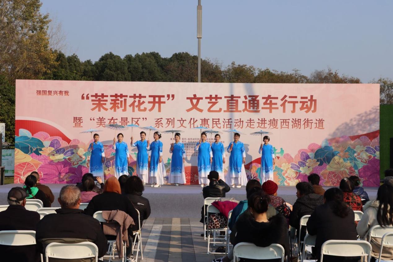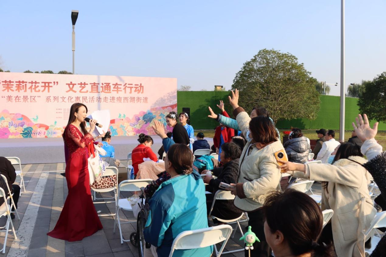 中国江苏网讯 暖阳驱寒,艺润民心。近日,瘦西湖街道汉广陵王墓南广场人头攒动、欢声如潮,“茉莉花开”文艺直通车行动暨“美在景区”系列文化惠民活动在此精彩启幕。活动打破传统文艺演出边界,创新融合文化展演、旅游推广、非遗体验、全民阅读、民生服务五大板块,8个精品节目与4大特色展台交相辉映,为居民打造了一场“可看、可玩、可学、可用”的沉浸式惠民盛宴。