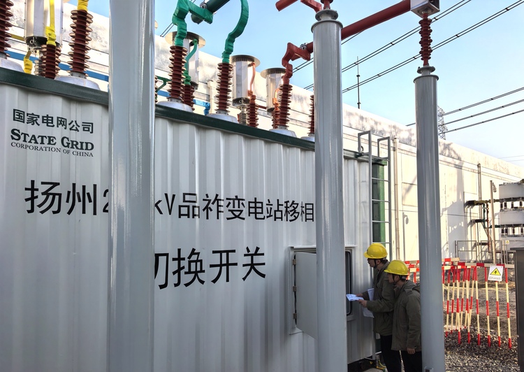 为让“闲置”的新能源精准流向“急需”的负荷中心,市供电公司联合国网江苏省电力有限公司电力科学院等单位,于2024年12月30日启动输电移相器工程建设。项目通过在高邮主城区品祚变电站与东北部周巷变电站之间的110千伏联络线上,加装1台移相器和1台移相切换开关,打造出一个可双向调控的“智能阀门”,对电能进行灵活控制,主要将高邮东北部的新能源电能输送到高邮主城区。