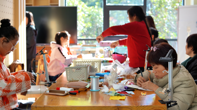 傍晚时分,光线悄悄偏移,工坊里依然暖意融融。这边,手指在丝线间灵活穿梭,一件件作品悄然诞生;那边,茶香袅袅,订单提示音轻轻响起。这不仅是一个工坊,更是一扇窗口、一个起点——让匠心被看见,让价值被认可,让每一个生命都能找到属于自己的闪耀方式。(郭萌)