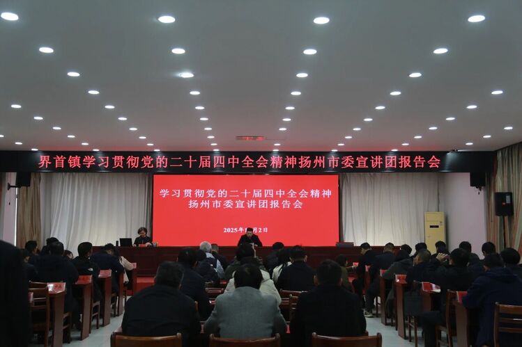 中国江苏网讯 2日下午,学习贯彻党的二十届四中全会精神扬州市委宣讲团报告会在界首镇举行。扬州市委宣讲团成员,江苏旅游职业学院党委委员、宣传部部长、教授钱小丽作宣讲报告。
