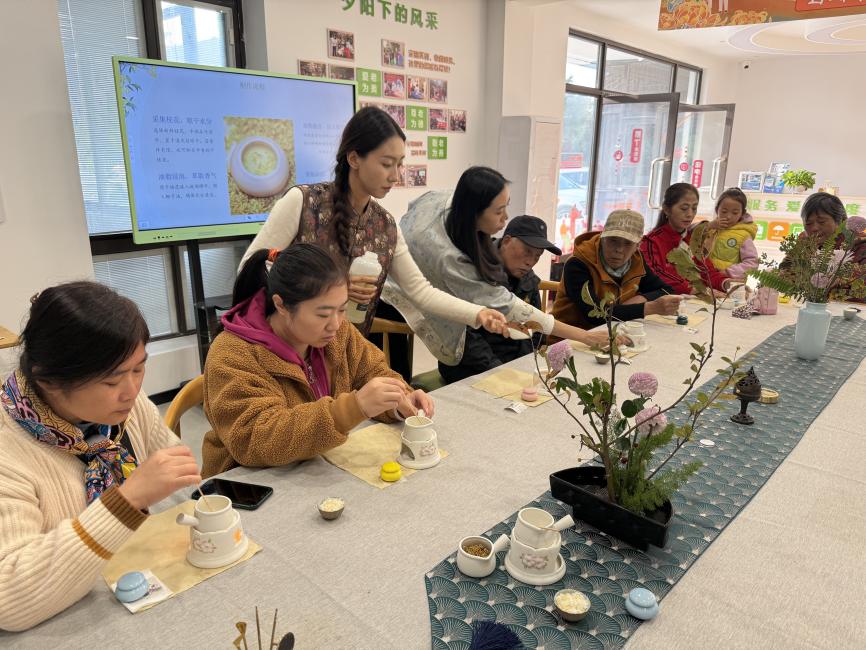在创智社区颐养中心,一场以“很‘膏’兴遇见你”为主题的桂花香膏手作课堂,让秋日的芬芳在指尖氤氲开来。非遗老师循着香道的历史脉络,细述桂花的千年寓意,更以一场行云流水的香篆表演,于方寸之间演绎传统美学的严谨与雅致。居民亲手熔蜡、调香、定型,将秋日桂香凝练为独特香膏,勾连起古今生活的雅致时光。