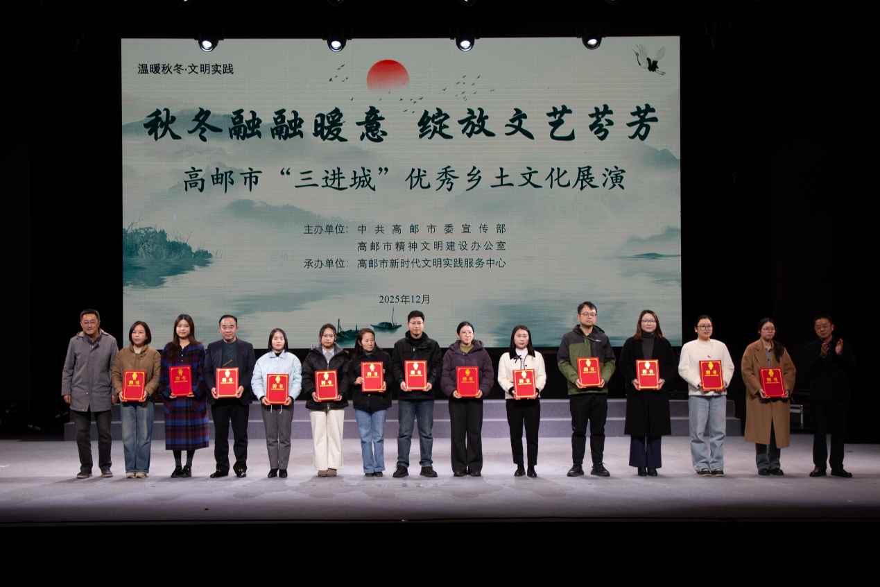 中国江苏网讯 近日,高邮市新时代文明实践基地小剧场内暖意融融、掌声阵阵,高邮市“三进城”优秀乡土文化展演活动在此精彩上演。活动伴随着“文明实践主理人”聘书颁发仪式,标志着“微光成炬”主理人培育行动的进一步深度推进。今年以来,高邮市新时代文明实践中心持续提供成长土壤,依托主理人“孵化”,不断挖掘、聚集、带动各类人才团队入驻文明实践领域,有效激活全市新时代文明实践活力。