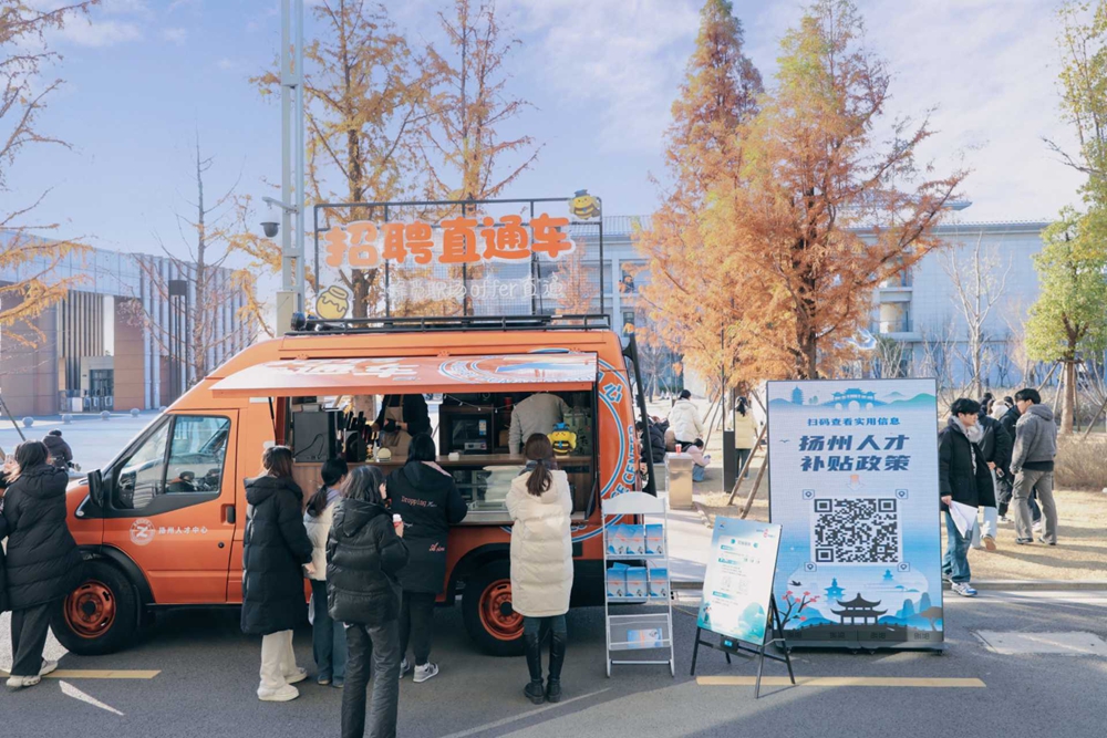 招聘现场,扬州市人才中心的政策咨询直通车和扬州市就业中心的政策咨询台吸引了不少学生关注。“如果留扬工作,我能在租房、交通上有补贴吗?”“困难家庭的学生申领求职补贴需要提供哪些材料?”……学生关注的留扬政策在这里都能得到详细解答。