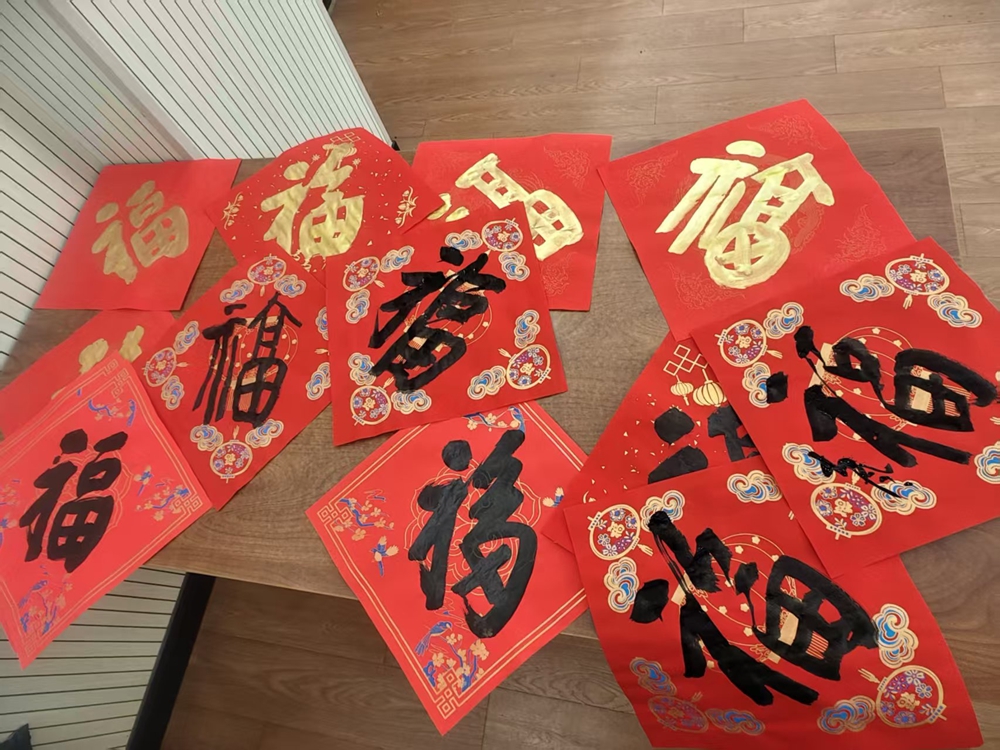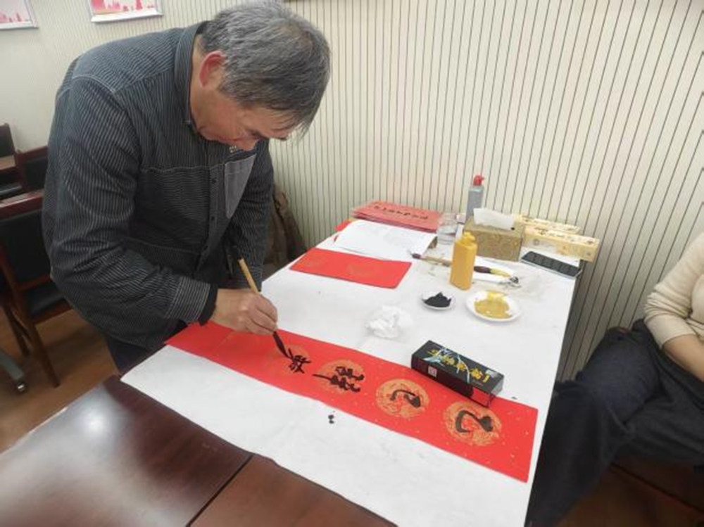 现场墨香四溢、红幅铺展,书法老师挥毫泼墨,一撇一捺间,喜庆的福字、吉祥的对联跃然纸上,退役军人或围在一旁静静欣赏、连连赞叹,或挑选心仪的内容请老师书写,红纸铺展、墨韵飘香,红底黑字的福联满场生辉,现场暖意融融,欢声笑语间,浓浓年味与尊崇暖意交织。